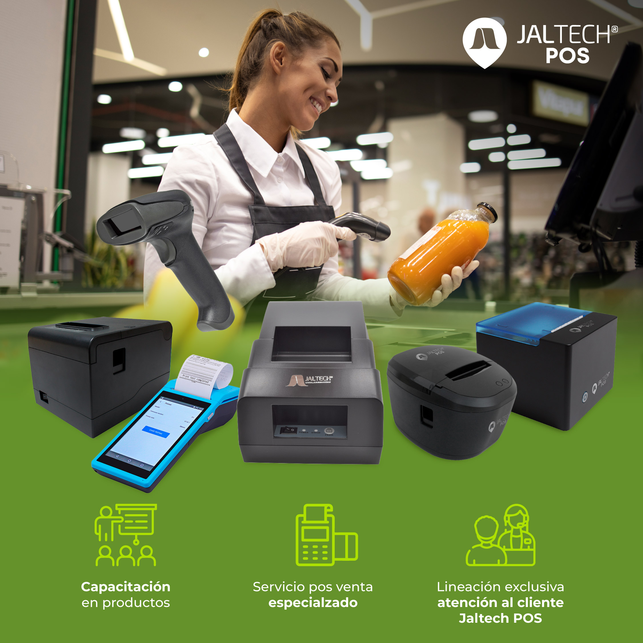 Todos estos productos son de Jaltech POS, y cuentan con la mejor tecnología y calidad del mercado. Por esta razón, pusimos a disposición de todos nuestros clientes la línea POS, para ofrecer una atención personalizada en todos los procesos de soporte técnico, orientación y garantías.
